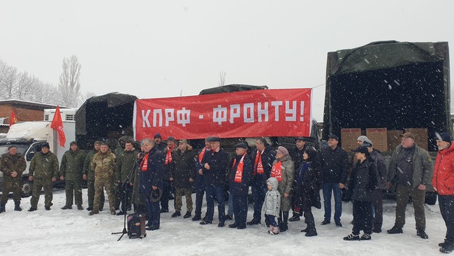 Попков Вадим Николаевич , поблагодарив от имени бойцов Председателя ЦК КПРФ Зюганова Г.А., заместителя Председателя ЦК КПРФ Кашина В.И., первого заместителя руководителя фракции КПРФ в ГосДуме Коломейцева Н.В., всех товарищей, которые принимали участие в организации этого конвоя, отметил, что именно от сильного тыла зависит успех на фронте.
