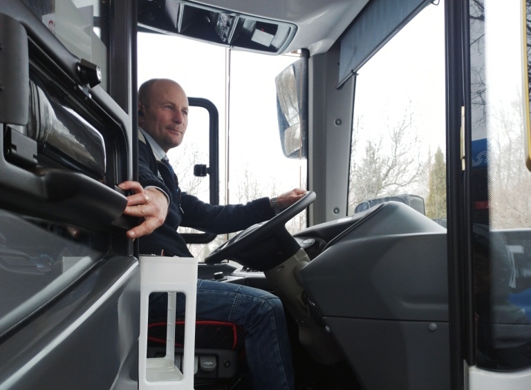 На фото — водитель первого в Волгодонске электробуса. Из архива редакции