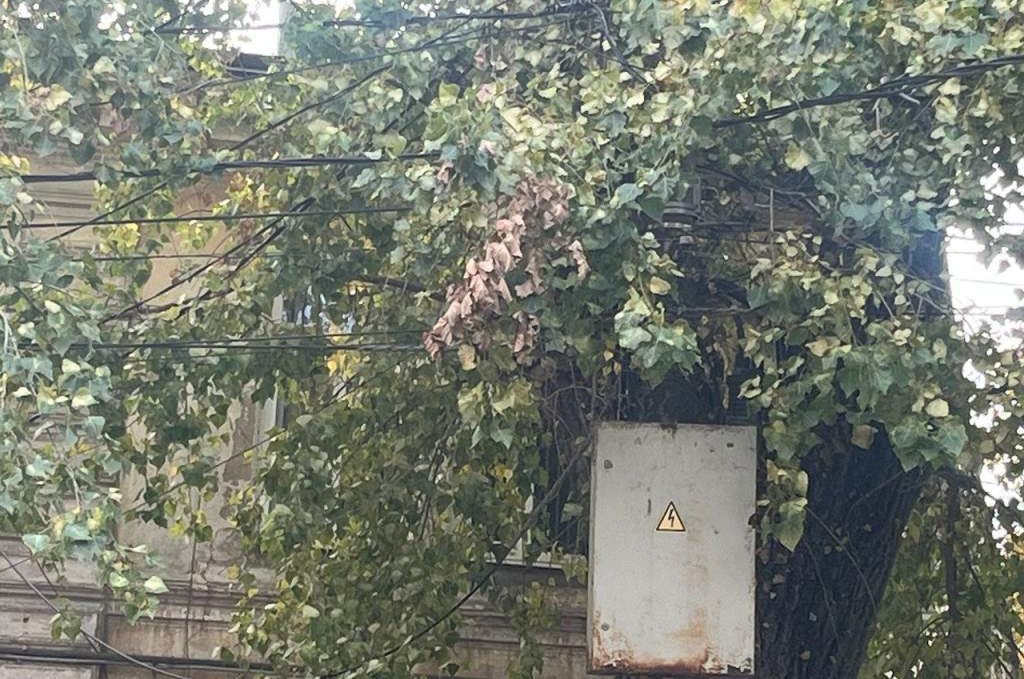 Отмечается, что столб на пересечении улицы Греческой и переулка Добролюбовского перегружен проводами и начал клониться к земле. Его единственная «поддержка» — бетонная конструкция, стоящая неподалеку. Другой столб — на пересечении улицы Греческой и переулка Украинского — буквально «зарос» ветками деревьев.